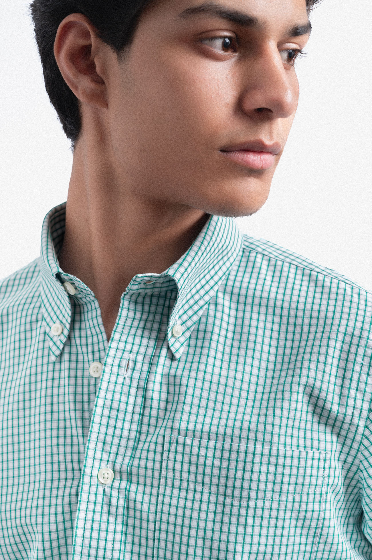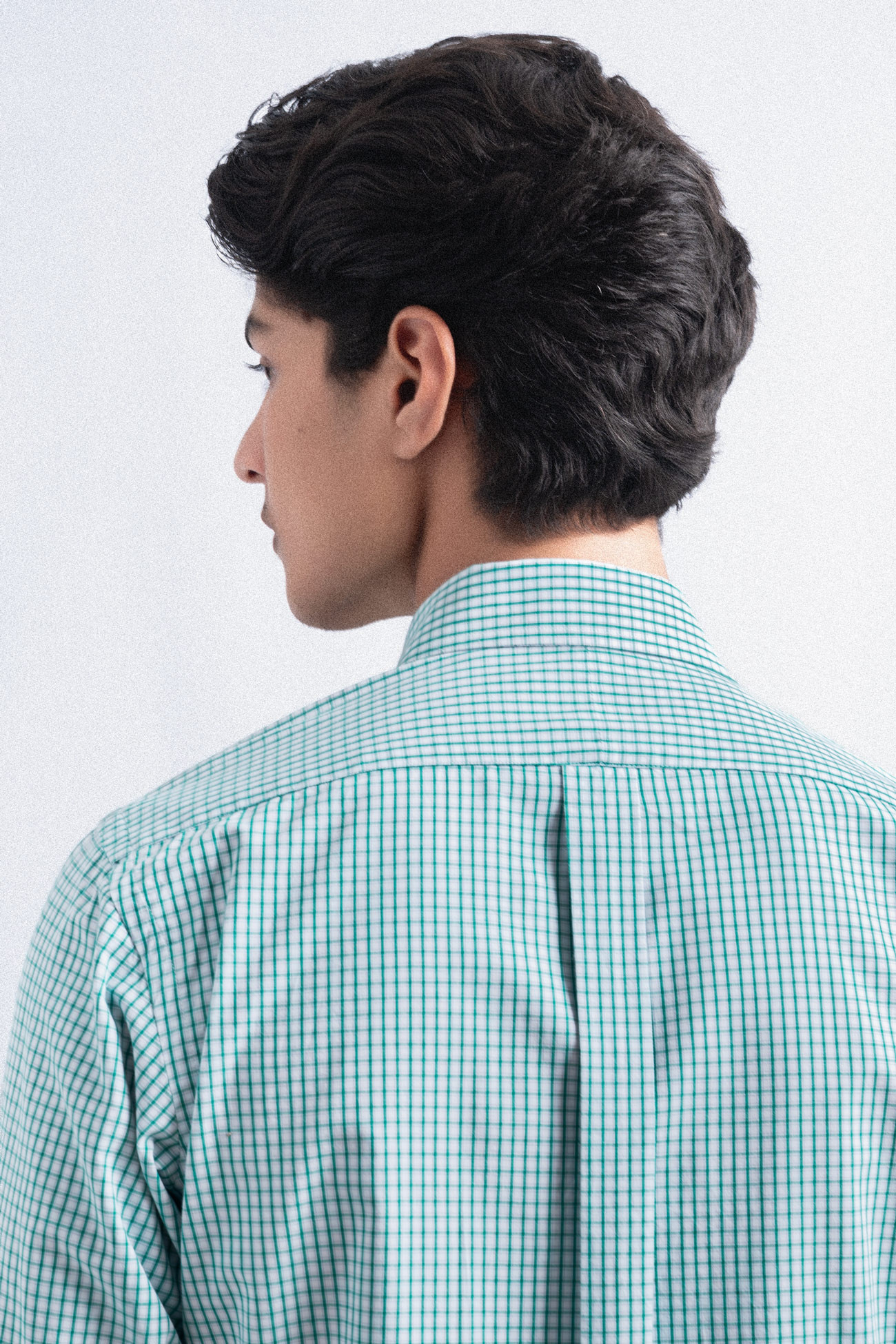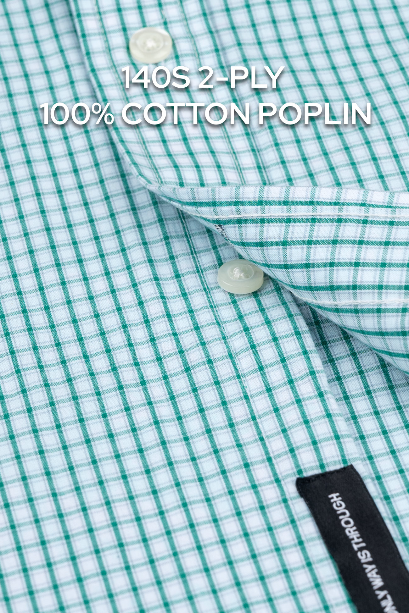 140S DOUBLE GREEN MULTI PIN CHECK COTTON POPLIN SHIRT