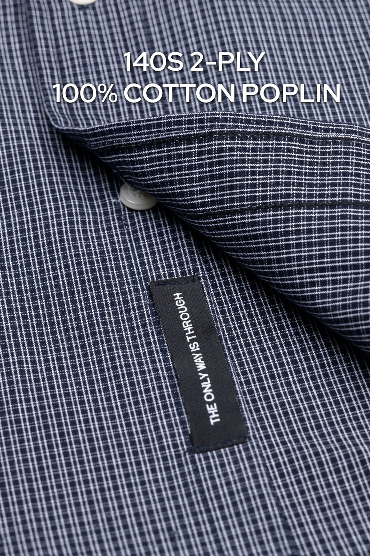 140S NAVY PIN WHITE MULTI CHECK COTTON POPLIN SHIRT